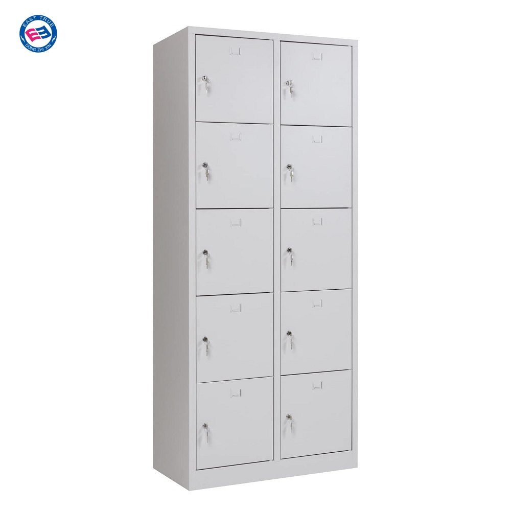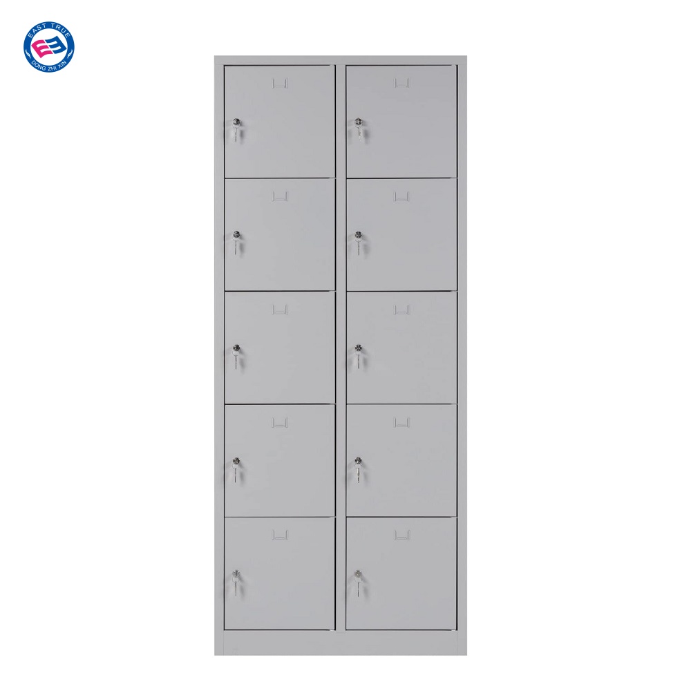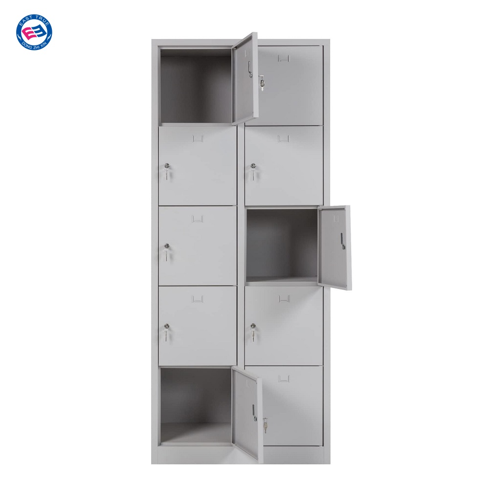 10-door steel college lockers are the perfect storage solution for dormitories, libraries, gymnasiums, and student activity centers. It features a sturdy cold-rolled steel construction and a durable powder-coated surface, perfectly combining exceptional load-bearing capacity, security, and space efficiency to meet the daily storage needs of a large number of students.