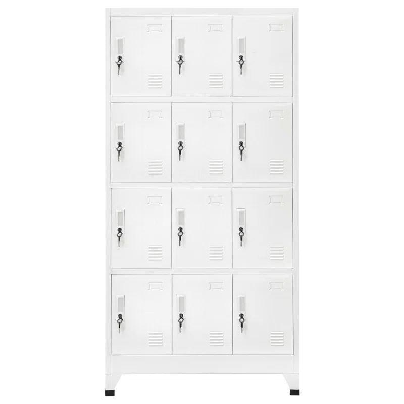 Steel 12-Door Secure Lockers provide durable, individual storage with lockable compartments. Crafted from scratch-resistant steel, featuring ventilation holes and anti-pry doors for enhanced safety.