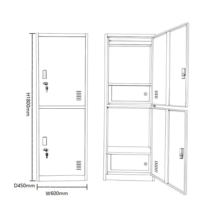 This product is a space-efficient 2-tier tall locker designed to meet shared storage needs for multiple users. Its unique dual-layer structure, combined with built-in private storage boxes, perfectly balances the convenience of public storage with the security of personal items.