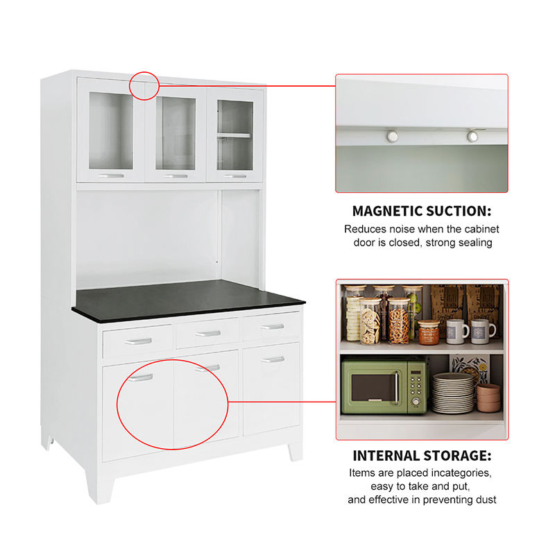 Utilizing high-quality metal, the metal kitchen cabinet is a durable and stylish storage solution designed specifically for modern kitchens. It's economical, practical, durable, and versatile, allowing for flexible configurations to accommodate diverse space requirements.