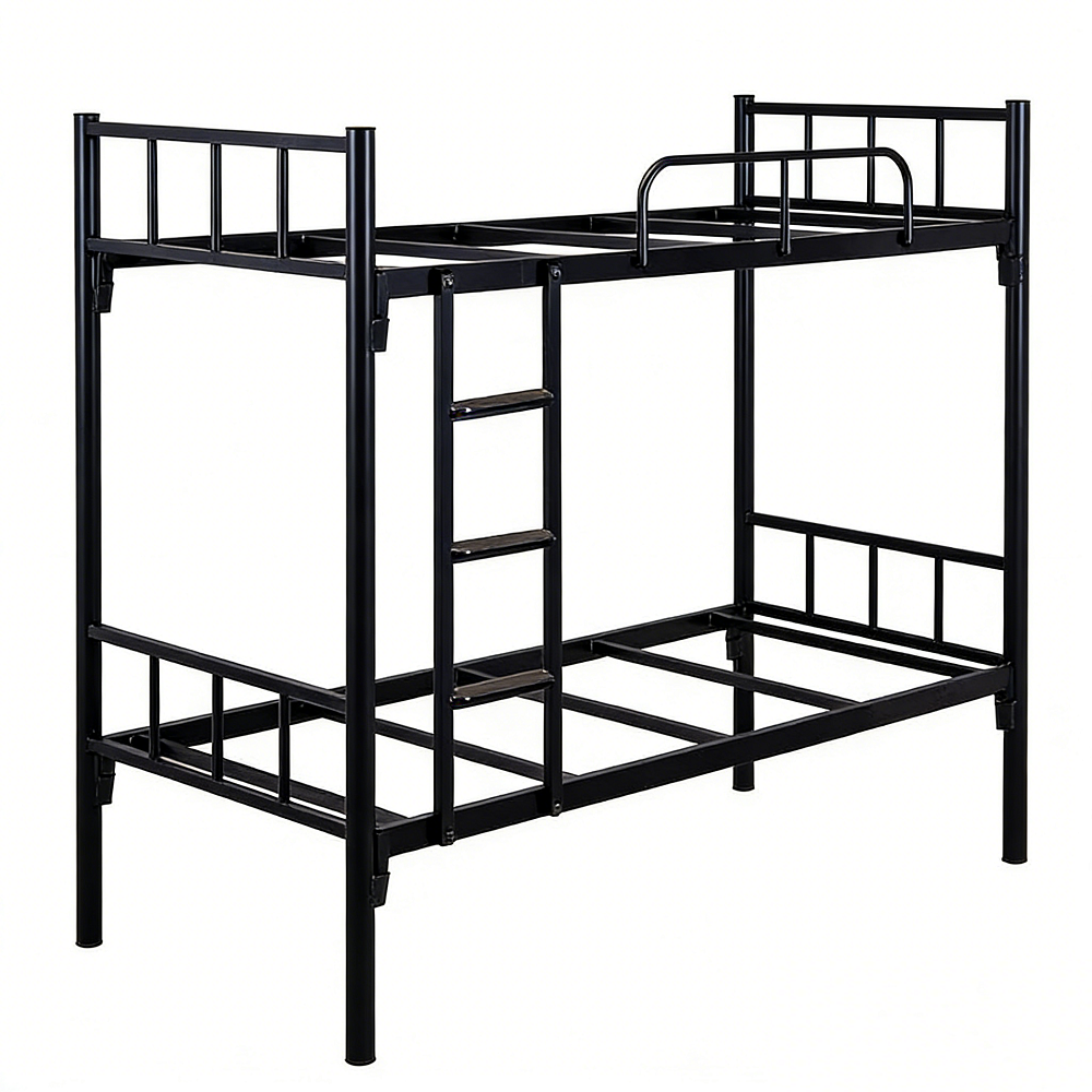 The double decker bed frame is a robust and space-saving sleeping solution designed for shared bedrooms, student accommodations, hostels, and compact living spaces. It securely stacks two sleeping areas vertically, maximizing floor space for other activities. This frame is compatible with standard mattress sizes and is engineered for long-term use.