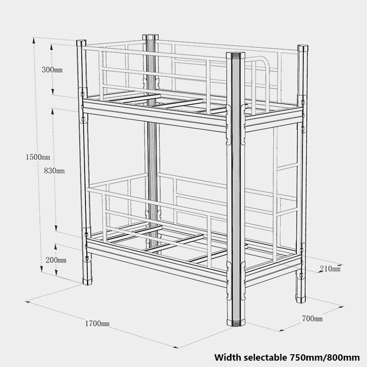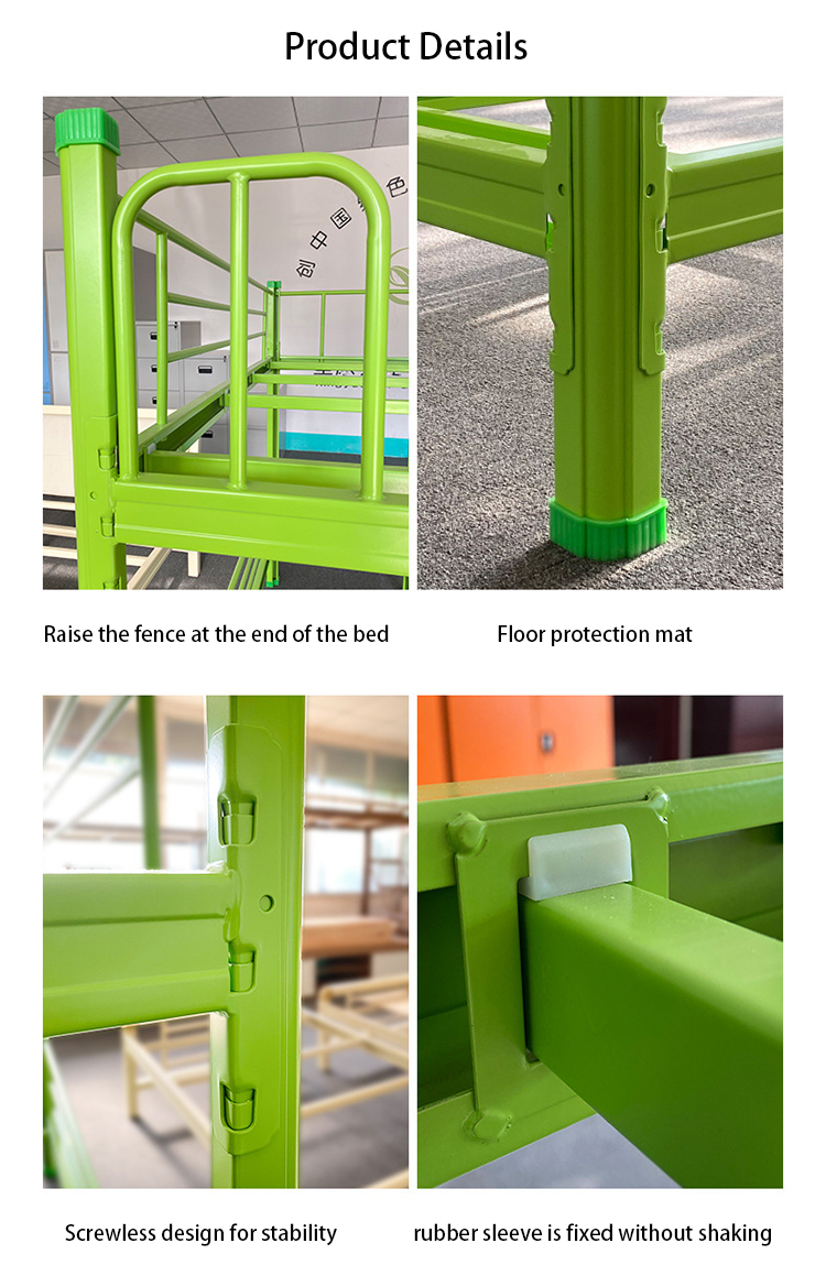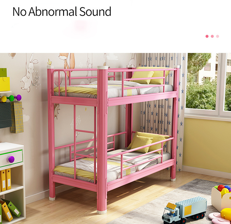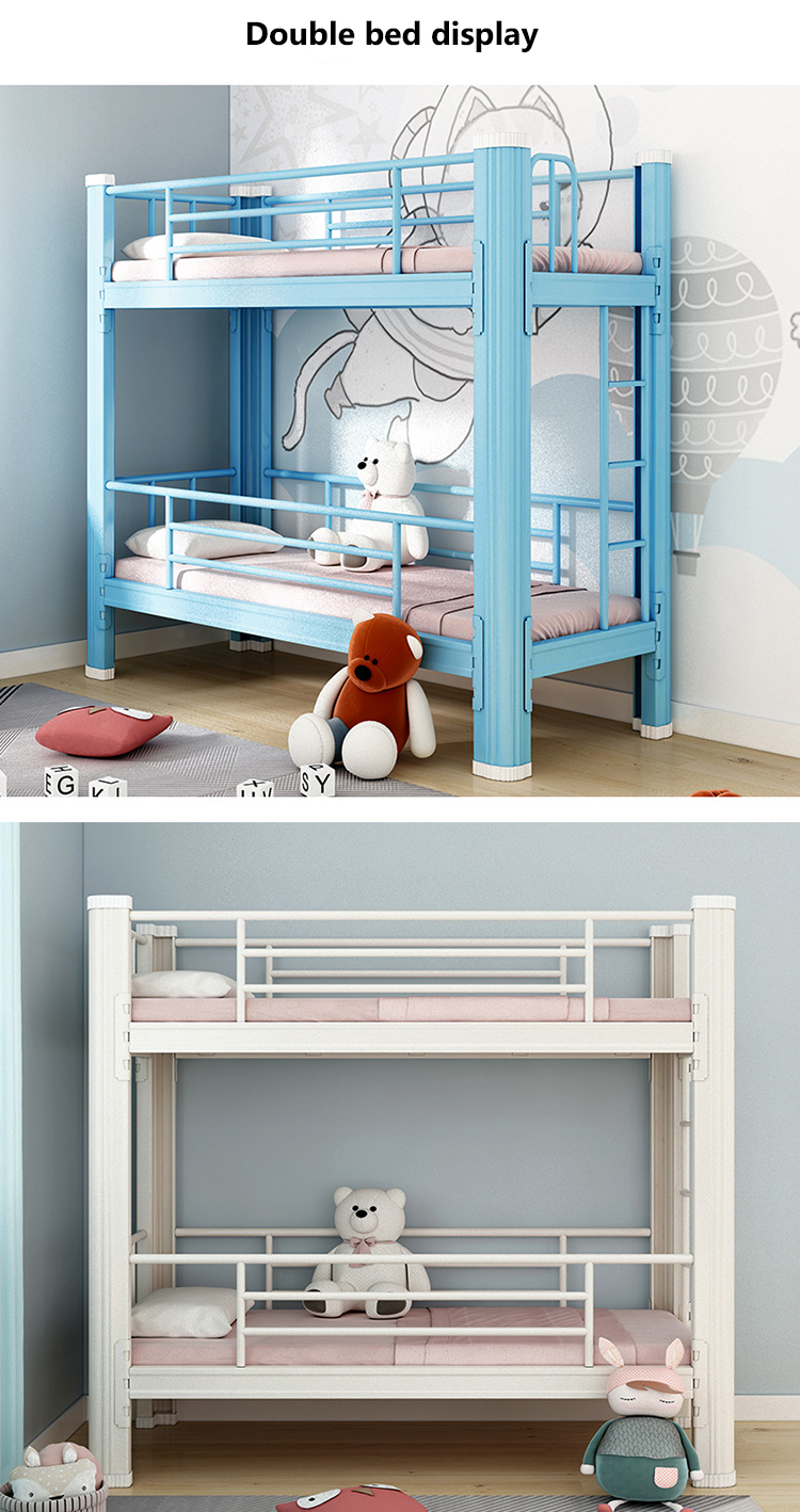 The metal bunk bed for kids is made of a steel tube structure and humanized design, durable and stable. The steel bed frame can effectively prevent corrosion, moisture, and water damage.
