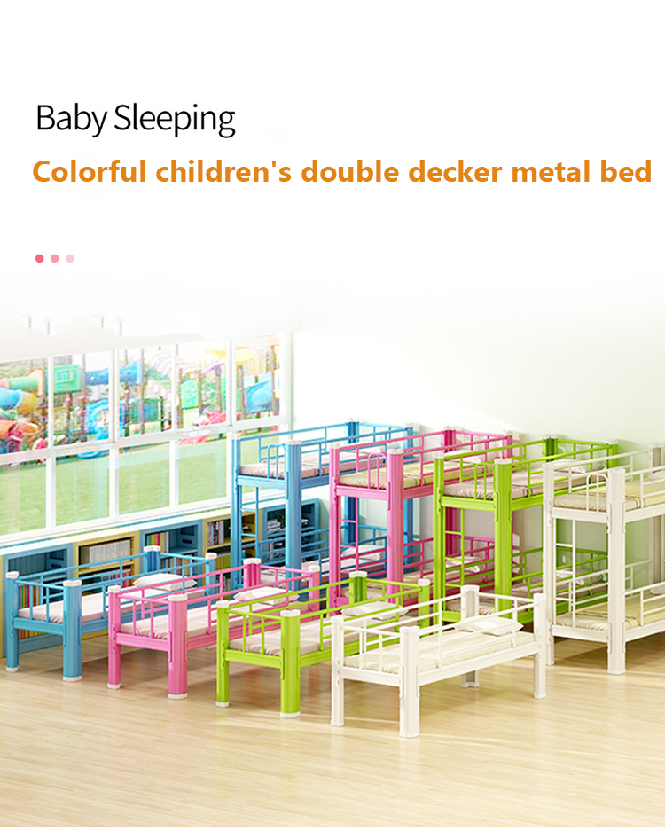 kindergarten dormitories Colored metal double decker beds,steel bunk bed with guardrail for children