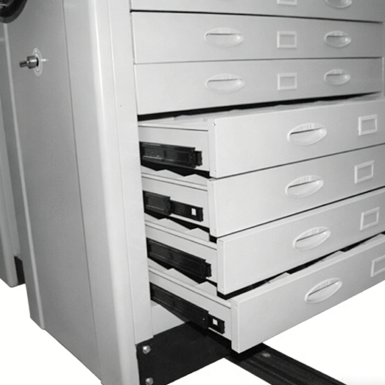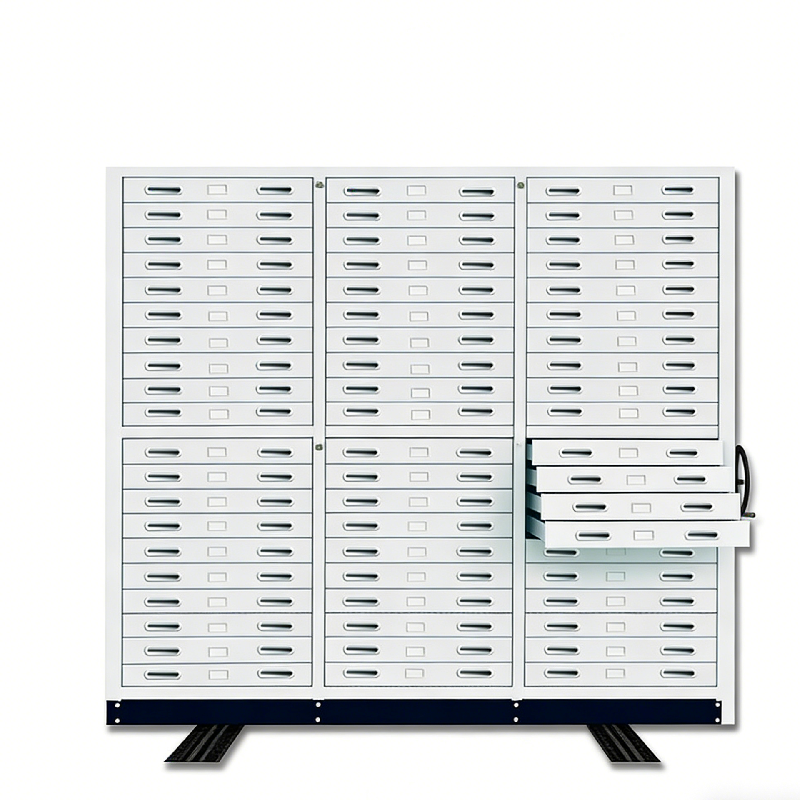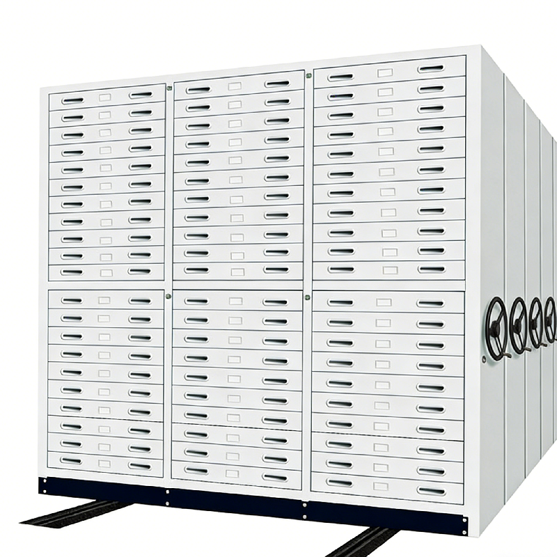 Manual Mobile Shelving Systems is a high-efficiency, space-saving storage solution designed for archives, offices, libraries, hospitals, and industrial warehouses. It replaces traditional static shelving by mounting multiple rows of cabinets on movable tracks, allowing users to open only one access aisle at a time, drastically reducing wasted floor space.