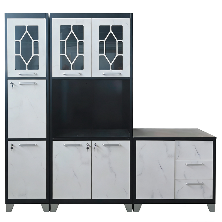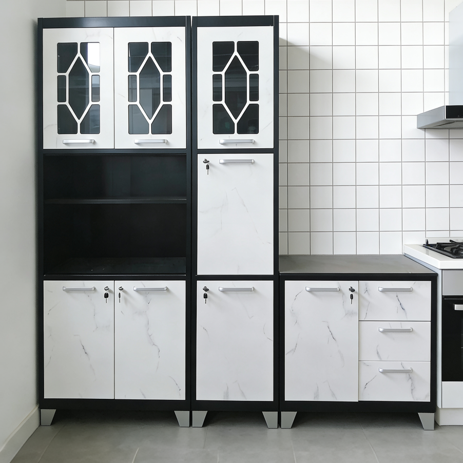 The metal kitchen storage cabinet with countertop, featuring robust construction, elegant design, and versatile storage solutions, serves as a valuable addition to any kitchen space. This exceptional storage solution will help create a tidy, efficient, and visually pleasing cooking environment.