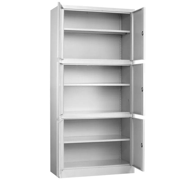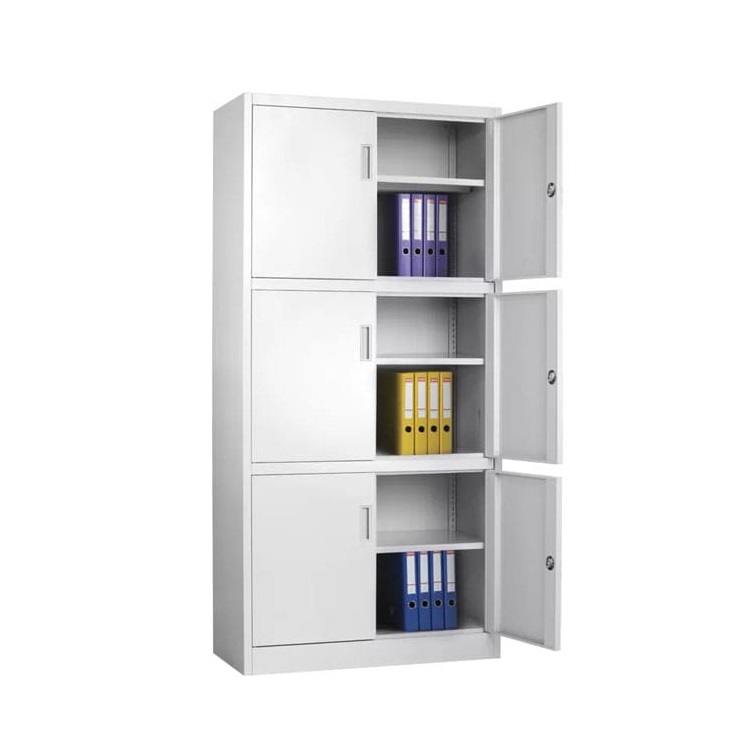 Metal office storage cabinets are steel storage units specifically designed for modern office environments. It features a modular three-section structure and adjustable shelves, enabling efficient classification and storage of documents and materials.