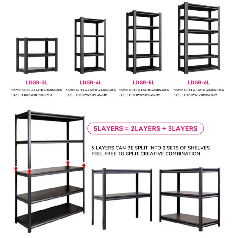 Multi-layer Steel Storage Racks are storage solutions designed for efficient space utilization. Suitable for homes, garages, warehouses, offices, or commercial spaces, they help you easily organize various items and create a neat and organized environment.