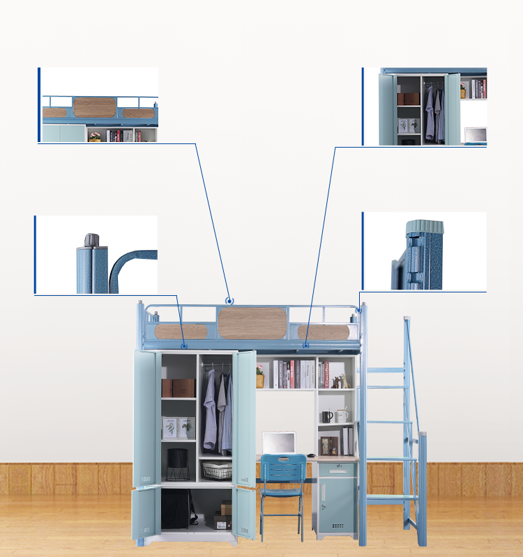Built around high-strength steel as the core, this single loft bed with desk & wardrobe integrates safety, practicality, and space optimization. It effectively addresses durability, safety, and storage challenges in multi-occupancy environments, making it ideal for compact living scenarios like campus dormitories, corporate employee apartments, and youth hostels.