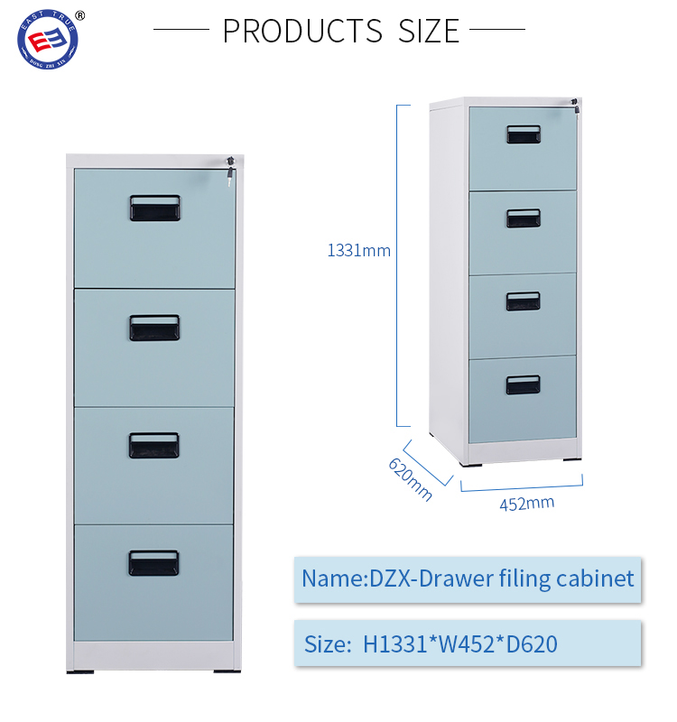 Steel 4 Drawer Vertical cabinet is simple in design and practical in function. They are designed for storing and organizing documents and materials.
