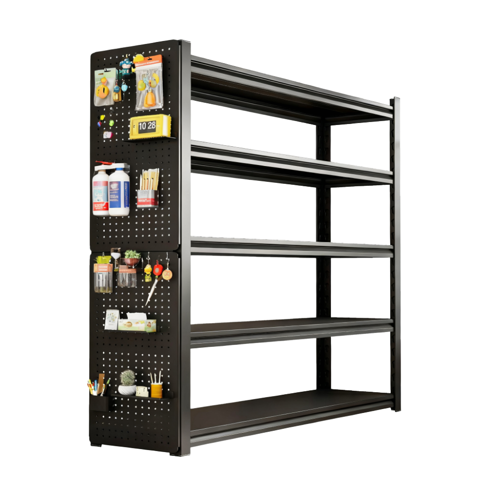 This steel shelving unit combines durability with versatile storage. Crafted from high-quality steel, it features strong weight capacity and adjustable shelves to customize space. The integrated pegboard side allows hanging tools or accessories, enhancing organization. Ideal for homes, offices, or warehouses, it keeps items neatly arranged and accessible.