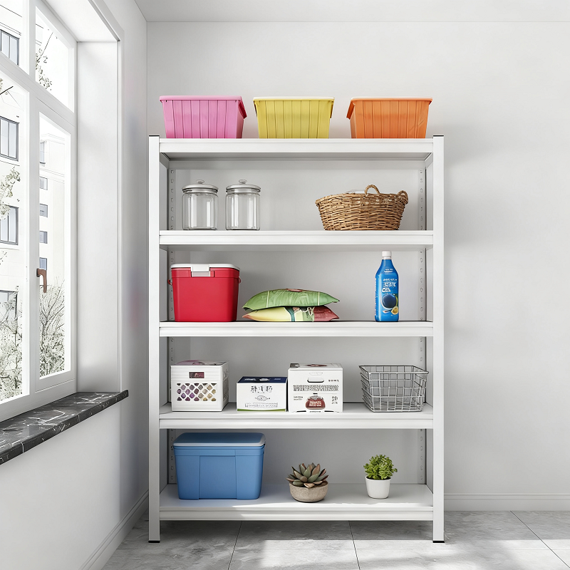This steel shelving unit combines durability, functionality, and modern design into one storage solution. Suitable for various environments, including warehouses, garages, offices, retail stores, or homes. It meets high load-bearing demands while optimizing space utilization.