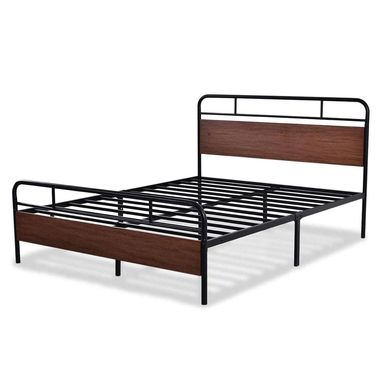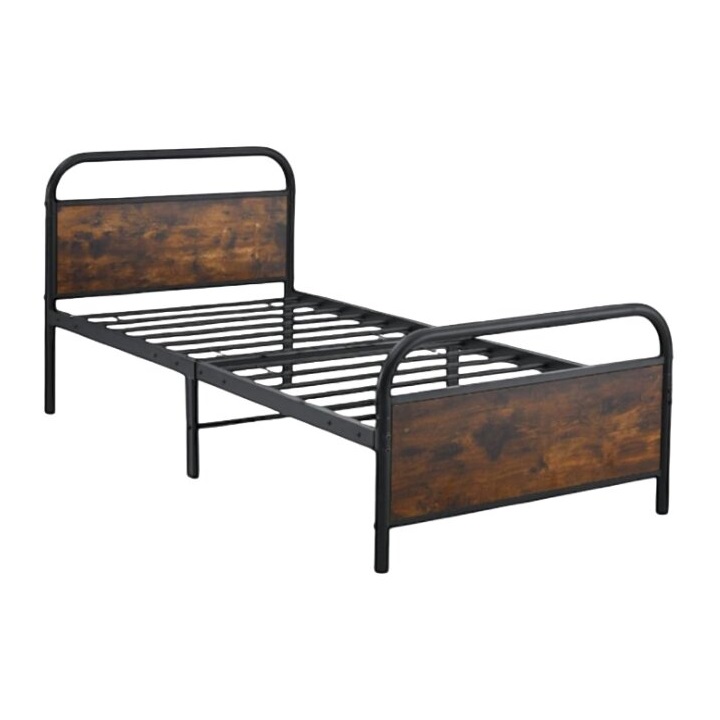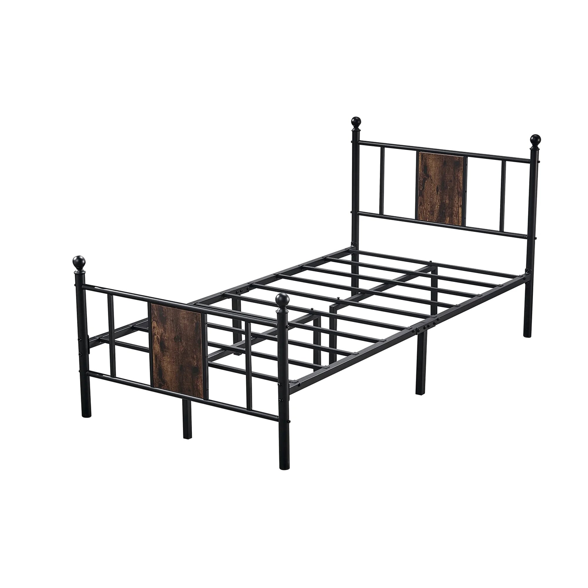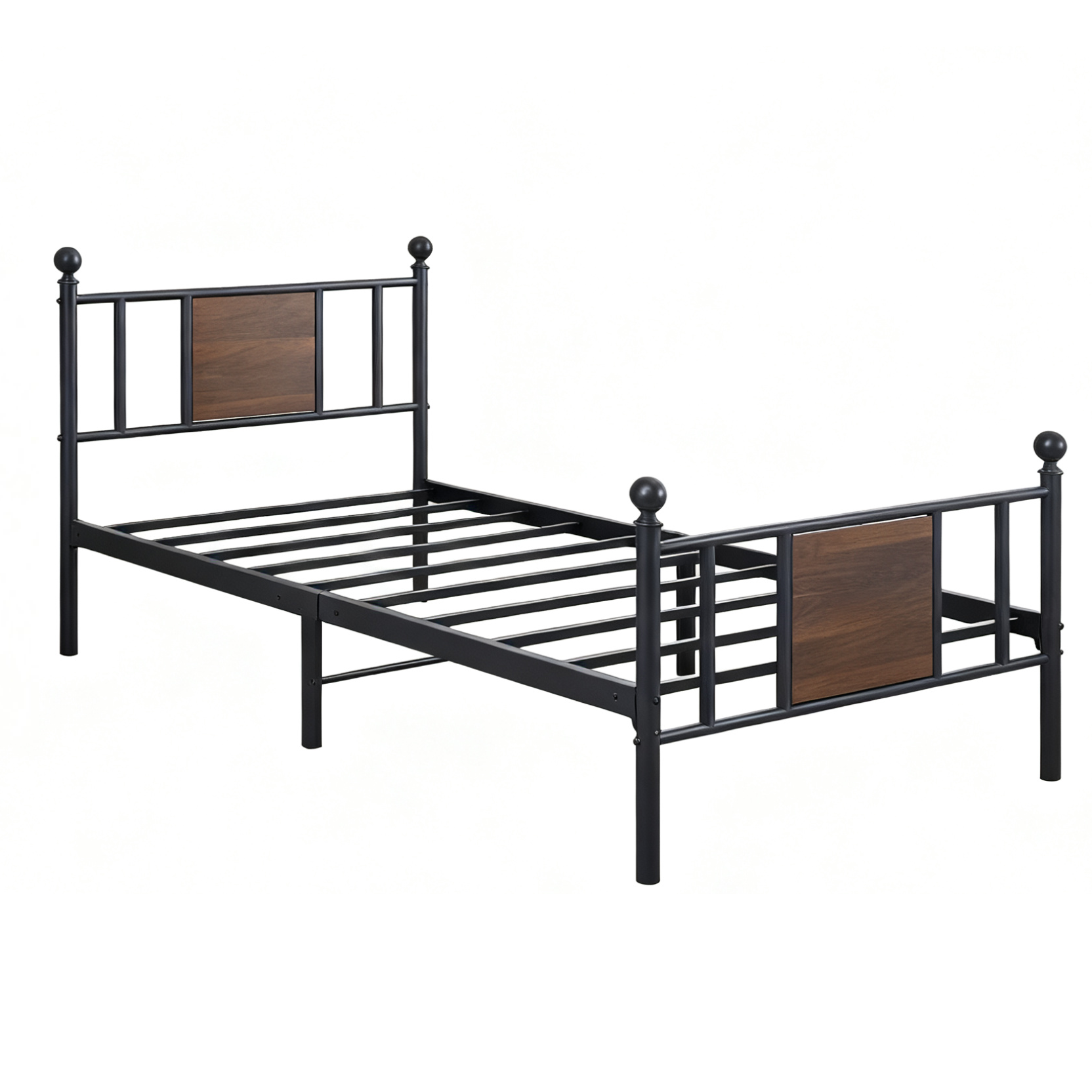 Steel Single Bed Frame with Wooden Headboard Footboard
