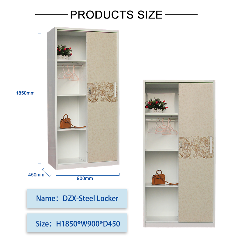 Dongzhixin Sliding Door Wardrobe Lockers are crafted from high-quality steel, ensuring a sturdy and durable construction. The surface printing design is beautiful and generous, adding a sense of fashion. The sliding door design saves space and is convenient for storage and access. The locker has a reasonable structure and provides sufficient storage space to meet daily storage needs. The wardrobe lockers are suitable for various occasions, including home, office, factory, and public places. It is an ideal choice for modern home and office environments.